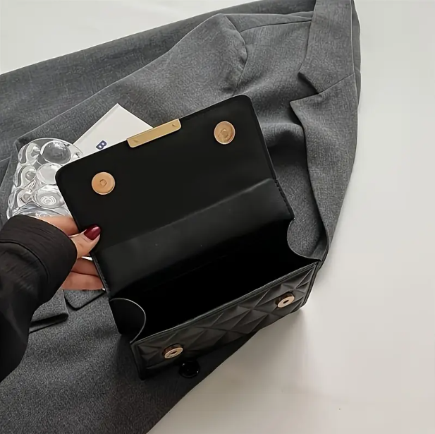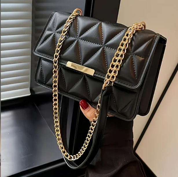 Елегантна квилтирана мини чанта за рамо с верига - Модерна едноцветна чанта с клапа, златни акценти, идеална за ежедневна употреба и подаръци, черна/бяла, малка чанта за рамо, подходяща за офис, пътуване, ежедневни излизки, шопинг, празненства, парти и т.н. Отличен подарък за Коледа, Свети Валентин, рожден ден, Деня на майката, Нова година, Деня на благодарността.