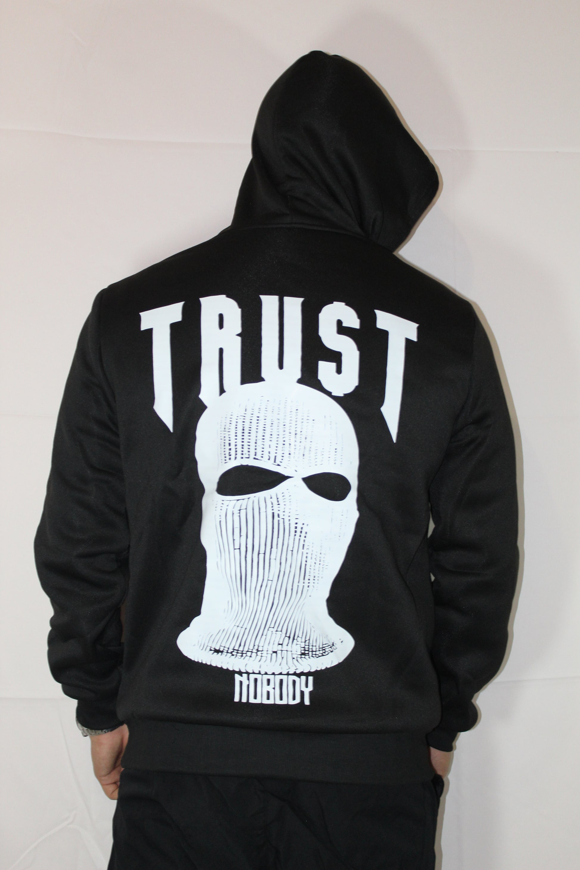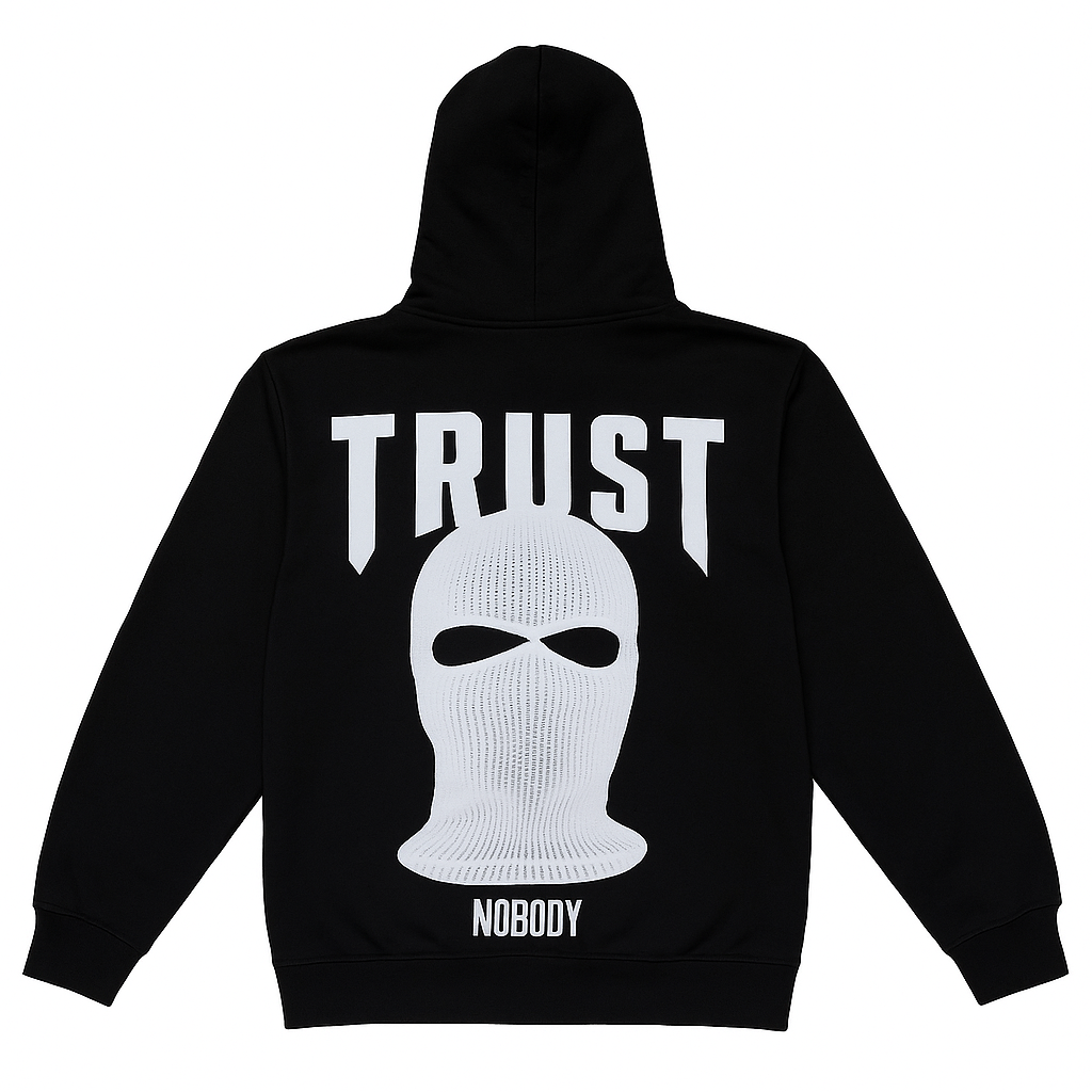 Изрази увереност и независимост с това черно oversized худи с впечатляващ бял принт на гърба – надпис “TRUST NOBODY”. Създадено за хора, които не следват правилата, а ги създават, това худи комбинира комфорт, стил и ясно послание.