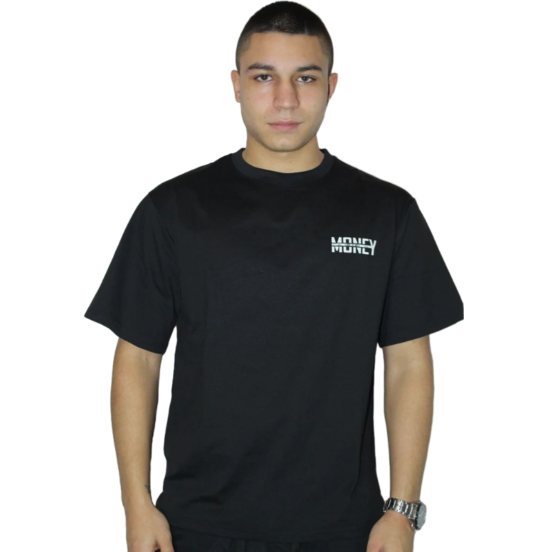 Тениската MONEY е създадена за онези, които не се страхуват да покажат амбицията си. Изчистен черен фон и мощен вертикален принт, в който паричните детайли се преплитат с bold типография – символ на hustle културата, успеха и безкомпромисния фокус.